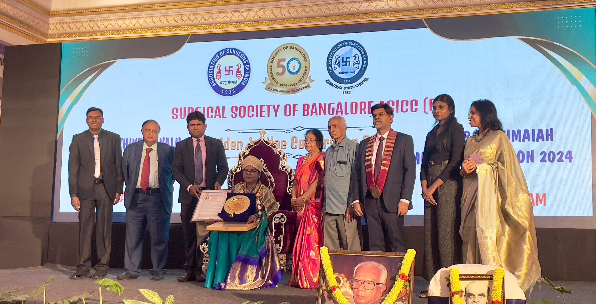 We were privileged to have the esteemed Dr. Sharan Prakash Patil, Minister of Medical Education & Skill Development, as our Chief Guest for the occasion. The event was graced by eminent surgeons, including my revered teacher, Dr. U Sheshadri, along with Dr. Vivek Jawali, Dr. MG Bhat, Dr. Anjanappa, Dr. Ashok Nayak, and Dr. Challani, who were felicitated for their remarkable contributions to the field of surgery.